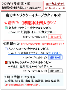 今回も東方キャラクターをイメージしたカクテルのレシピ本を出品いたします。