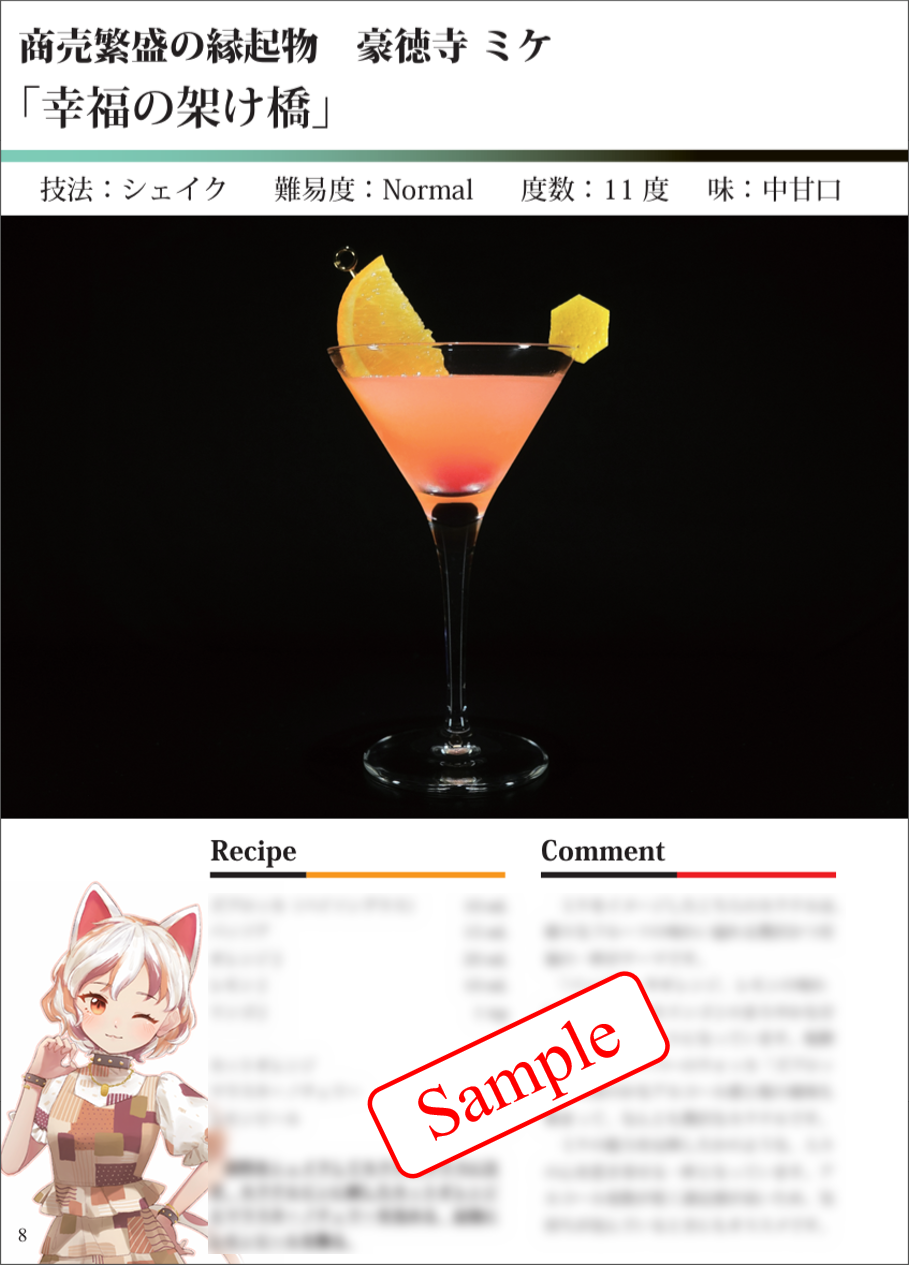 カクテルは12キャラクターの全12レシピ。価格は1冊 500円です。