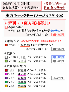 今回も東方キャラクターをイメージしたカクテルのレシピ本を出品いたします。